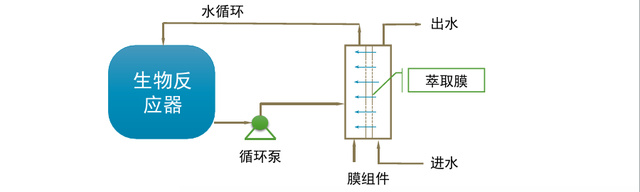 這種系統(tǒng)比較少的應用于大規(guī)模項目中,主要使用萃取膜將污水與生物反應器進行隔離,利用萃取膜的選擇透過性,使目標污染物透過,并進入生物反應器進行降解,而有毒有害的物質則被隔離。
